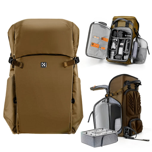 K&F CONCEPT Nature Wander 30L Outdoor Camera Backpack for Hiking & Camping (Champagne Brown)