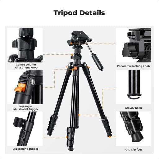 View full detailsK&F CONCEPT O234A0 Lightweight Tripod 3-Way Pan BV01 Head w/ Phone Holder
