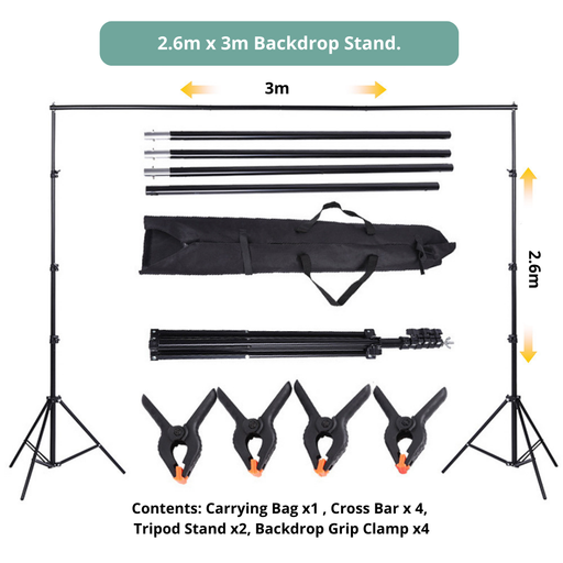 OEM (Generic) Photography & Studio Backdrop Stand Set with 4-Sections Crossbar - 3m (W) x 2.6m (H)